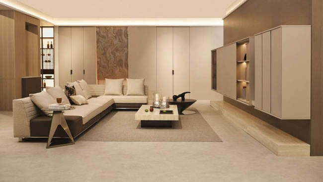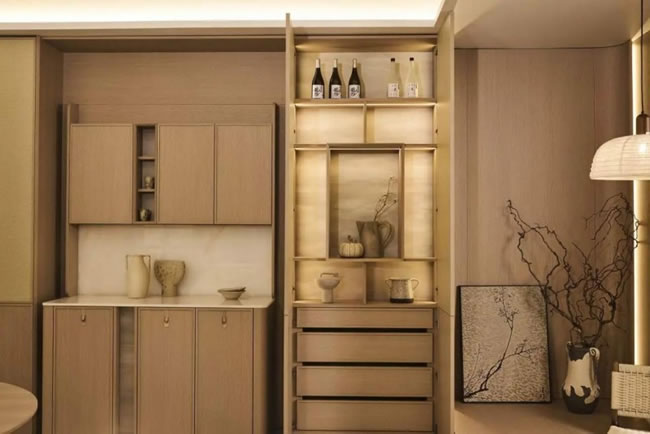 杰尼亚系列以现代简奢美学为核心,创新研发精工免漆板、高端羊绒质感饰面、半嵌入式皮革拉手等,极致的细节处理与超感知的精致度,传递生活品质哲学。深度聚焦生活场景打造复合功能模块——健身收纳柜、嵌入式酒柜、沙发边柜模组,将收纳、互动娱乐、品质生活集于一体,满足用户的多元生活需求。