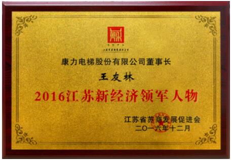“苏商领袖年会”作为江苏商界年度顶级盛会,作为年度盛典,大会发布了“2016年度江苏新经济领军人物”,康力电梯股份有限公司董事长王友林荣誉当选。