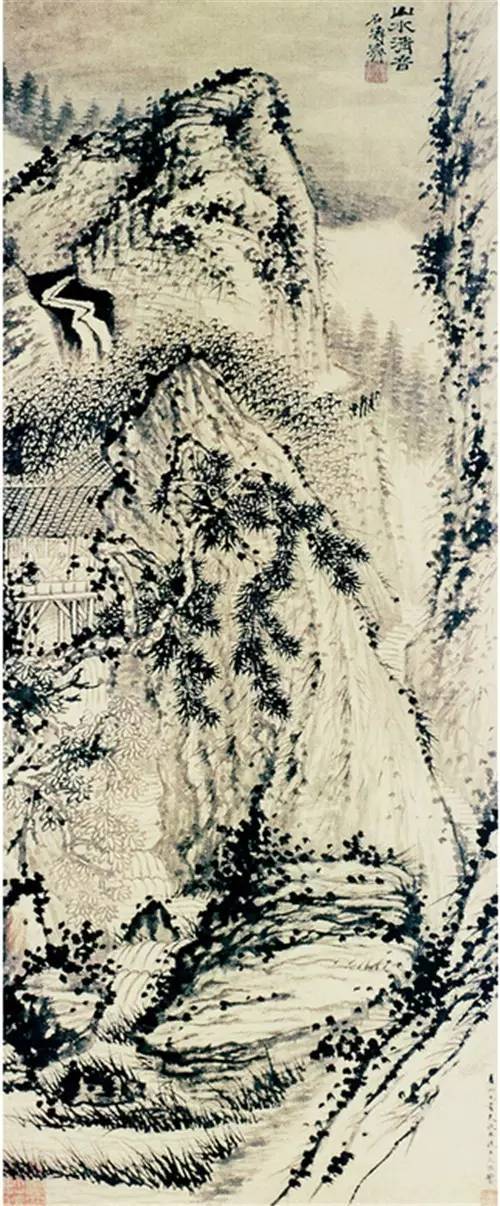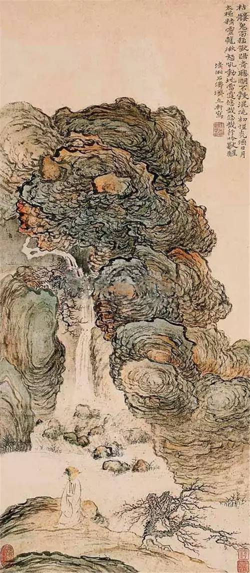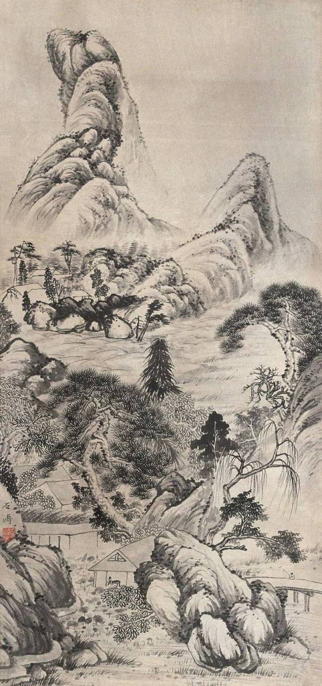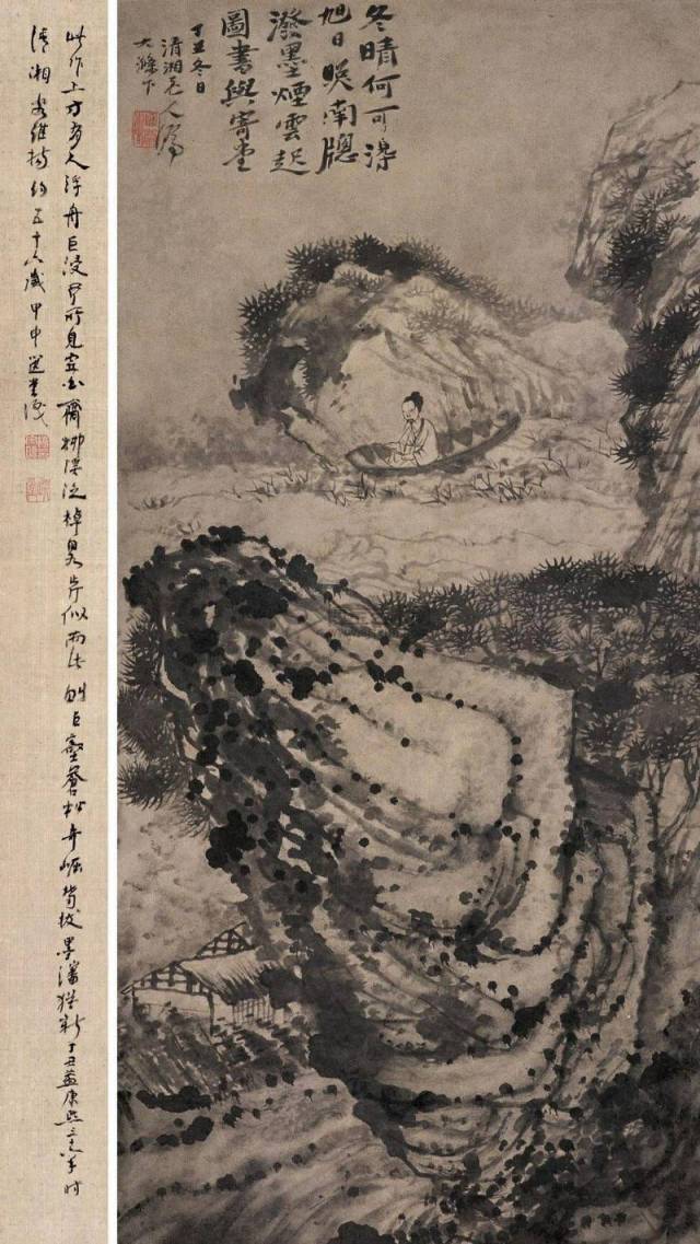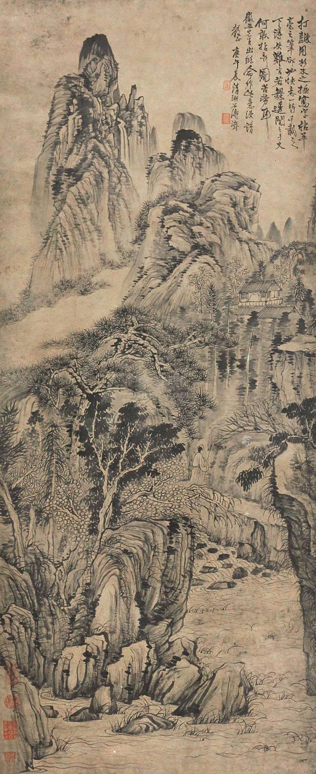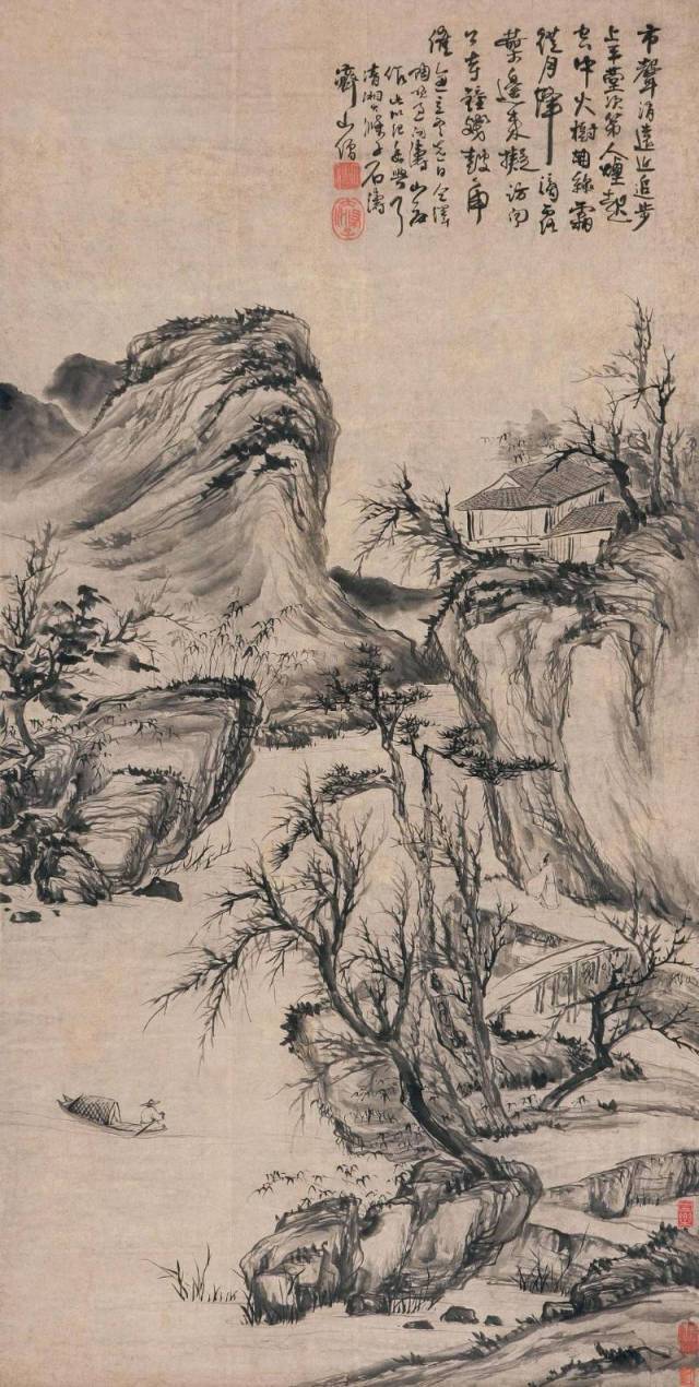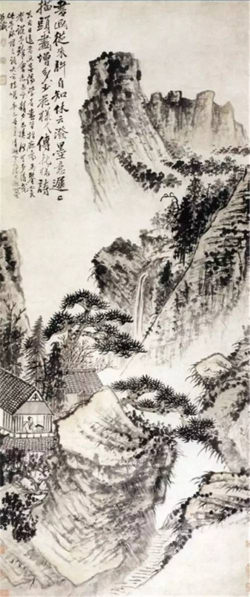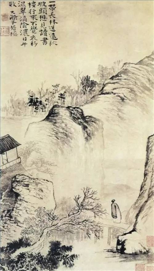 石涛(1630一1724)清初四僧之一。法名原济,一作元济、道济。半世云游,饱览名山大川,是以所画山水,笔法恣肆,离奇苍古而又能细秀妥帖,为清初山水画大家,石涛作画构图新奇,无论是黄山云烟,江南水墨,还是悬崖峭壁,枯树寒鸦,或平远、深远、高远之景,都力求布局新奇,意境翻新。