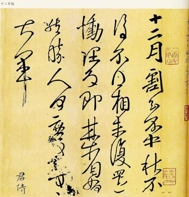 那么《十二月帖》为什么文字也不通呢?据明代董其昌考证,《十二月帖》与宋太宗淳化年间的《淳化阁帖》中王献之的《庆至帖》原为一帖,后被割裂。《中秋帖》和《十二月割帖》因句子被割,无法标点,无法释读,语句不连贯,不知所写。