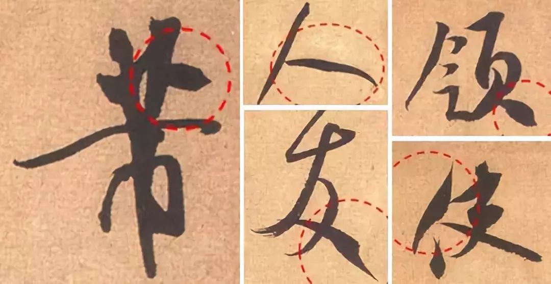 从用笔上看,有不少地方很诡异,如:“使”的第一笔撇画,“领”的最后一笔点画,“友”的最后一笔长点,“芾”的上部分右横,均能够比较好地突显他的用笔技术。