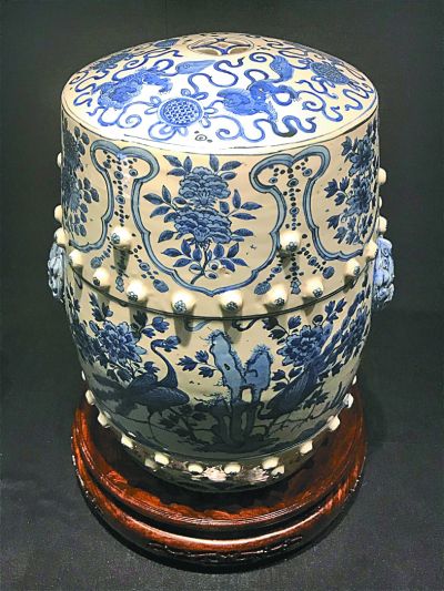 八仙人物、暗八仙、松下老人,这些极富道教色彩的纹样以较高的频次出现在展览的第一部分,让人印象深刻。嘉靖皇帝朱厚熜年少登基,其对道教的崇信致使该朝御窑青花瓷器特征显著、个性鲜明。嘉靖朝典型青花瓷器采用进口“回青”料与国产“石子青”料的混合料描绘纹饰,烧成后,纹饰呈现蓝中泛紫的浓艳色调。现场展出的《青花海水云龙纹盖罐》《青花婴戏图盖罐》便是其中代表。相较嘉靖朝,隆庆朝虽历时仅6年,但御窑烧造青花瓷器的数量仍相当可观。由于对使用青料的配比更加精准,隆庆御窑青花瓷纹饰颜色更为纯正,四方、多方、瓜棱、银锭等异形器无不彰显出器物造型的多样化和匠人非凡的想象力。到了万历朝,人们开始使用一种产自浙江的青料——浙料。从本次展出的《青花加彩松竹梅鹊图葫芦瓶》《青花折枝桃纹梵文莲花式洗》便可看出,用浙料描绘的青花瓷器,纹饰呈现透彻的蓝中泛灰色调。在绘画技法方面,典型万历御窑青花瓷器一般先以较浓青料勾描图案轮廓,再以淡青填染,“福”“禄”“寿”等装饰纹样皆是常见题材。