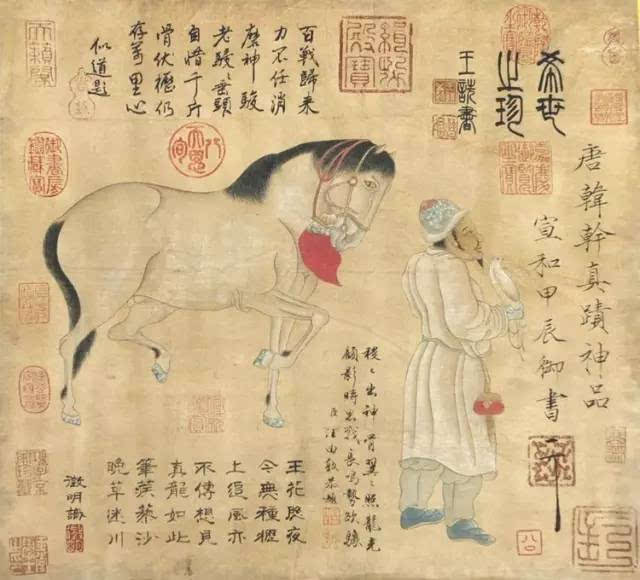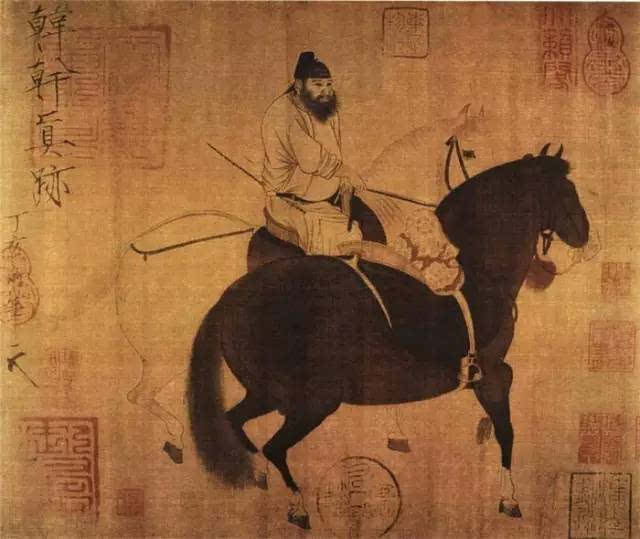 韩幹曾被唐玄宗召入内廷成为一名宫廷画家。当时宫中陈闳以画马荣遇一时,玄宗令韩幹师之,幹不奉诏,谓“臣自有师,今陛下内厩马,皆臣之师也”。可见,韩幹画韩幹注重写生,以真马为师,虽宗法曹霸而有出蓝之誉,在艺术上取得了巨大成就。其画马骨肉停匀,壮健神俊,穷其殊相,被誉为“古今独步”。