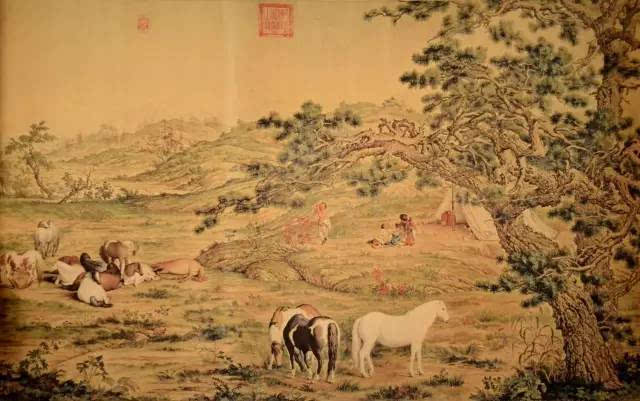 郎世宁是意大利人,清康熙帝五十四年(1715)来华传教,随即入宫成为宫廷画家,曾参加圆明园西洋楼的设计工作,历任康、雍、乾三朝,在中国从事绘画达50多年。他大胆地把西洋画的技法融入中国画当中,开创了一条“西画中用”的道路,形成了一种前所未有的新画体,史称“郎世宁新画体”。他的绘画技术十分全面,人物、肖像、走兽、花鸟、山水无所不涉,亦无所不精。