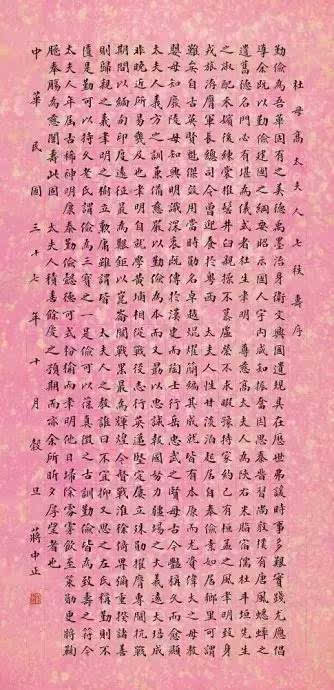 蒋介石 1948年作 杜母高太夫人七秩寿序 立轴