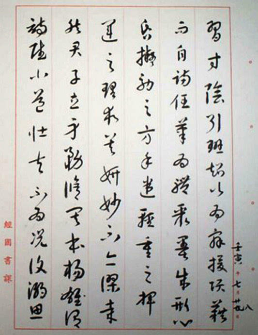 蒋介石是政界人物中最罕见的人物,他是一位保守的革命者。书法一如其人,衣冠整洁,笔直字方,不逾规矩。