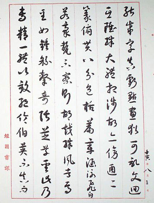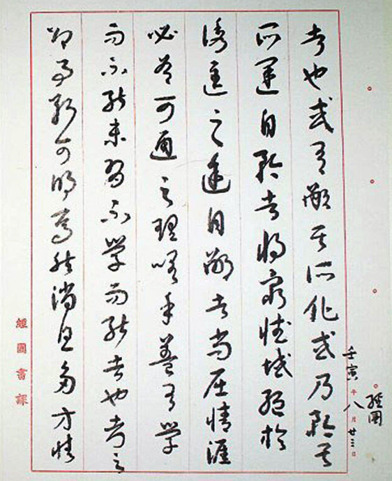 从他的成长轨迹来看,从小就受到了良好的传统正规教育,对传统国学进行过潜心钻研,坚持写省察日记,规范自己的言行;从执政策略上来看,他更多的是走传统伦理救国的道路,因此不难揣测他的书法必以工整端严见长。就字迹而言,容易看出一股凛然正气。