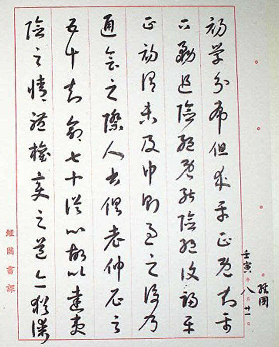 可能是因为长期在苏联不写汉字的缘故,蒋经国此时写汉字生疏而随便。虽然蒋经国早已长大成人,但蒋介石仍指示他写字要认真,要精神贯注,有始有终。书法往往能反映一个人为人处事的态度和作风。