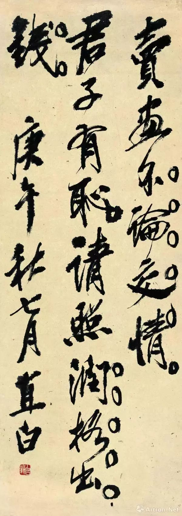 这段告白专门贴给那些前来向他索画的日寇和汉奸的大小头目们看的,说如果你买画,找专门的经纪人来就可以了,不必亲自驾到,从来都说官不入民家,您若来了,那就是方我,恕不接见。时为1940年。到1943年,他干脆贴出了“停止卖画”的告白。
