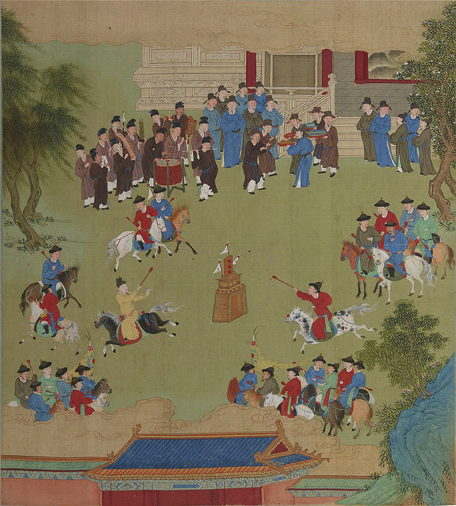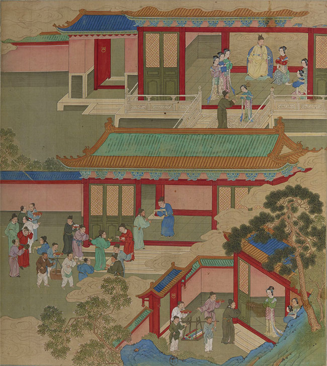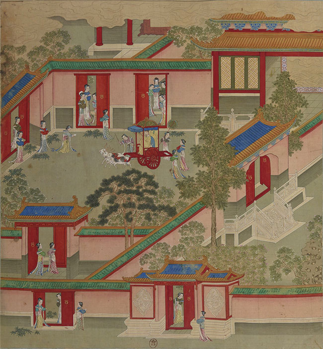 隋史上记:炀帝溺于选游,用度奢侈。于宫中营筑别苑一所,叫做西苑,周围有二百里宽,中为海子。周围亦十余里,海中起方丈、蓬莱、瀛洲等山,以像东海中三神山,各高百余尺。山上都有台、观、宫殿,罗列于上。海子北边,开一道河渠萦纡回绕,引水注于海子内。沿渠盖院落一十六所,院门都傍临着河渠。每一座院里面,都有宫人美女,而以四品夫人掌管。穷极华丽,以恣游玩。遇秋冬时节,见宫树凋落,则剪五彩绢帛为花、为叶,缀于枝条之间。于池沼中,亦剪彩为荷、为芰、为菱、为芡,贴在水面,与眷夏间的景物一般。久之,若颜色改变,又换上新的。其侈靡如此。那十六院中的宫女,彼此各以缯馔精丽相争相胜,以此希恩取宠。炀帝游观无厌,惟目不足,好乘月夜,随从、宫女数千骑遨游苑中。命词人编成清夜游的歌曲,使宫女于马上唱之。未几,又游幸江都,留连不返,遂以失国。