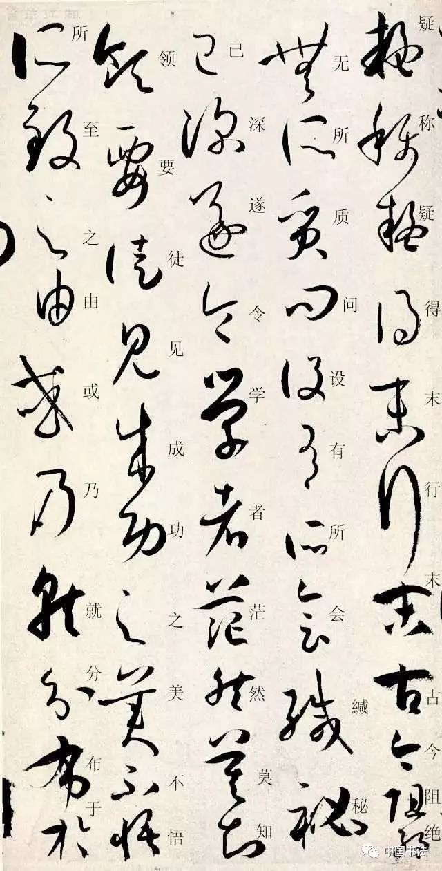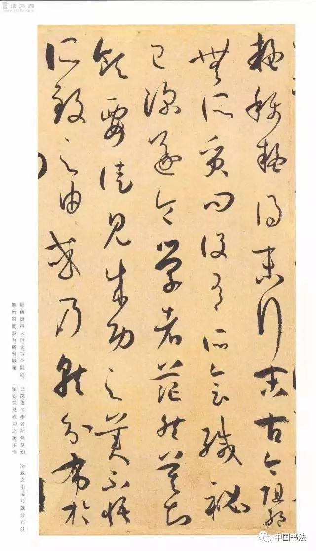 观察笔法中悬针垂露似的变异,奔雷坠石般的雄奇,鸿飞兽散间的殊姿,鸾舞蛇惊时的体态,断崖险峰状的气势,临危据枯中的情景;有的重得像层云崩飞,有的轻得若金蝉薄翼;笔势导来如同泉水流注,顿笔直下类似山岳稳重;纤细的像新月升上天涯,疏落的若群星布列银河;精湛的书法好比大自然形成的神奇壮观,似乎进入决非人力所能成就的妙有境界,的确称得上智慧与技巧的完美结合,使心手和谐双畅;笔墨不作虚动,落纸必有章法。在一画之中,令笔锋起伏变化;在一点之内,使毫芒顿折回旋。