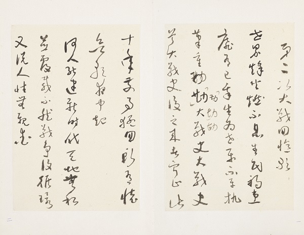 民國36年(1947)10月15日,他苦思紛擾時局,不能成寐,故倚枕寫下此詩,復於12月4日京滬夜車中續完,表達渴望和平的心情。一千八百餘字,筆筆精到,使轉頓挫莫不合乎法度,點畫間隨處可見深厚功底,字體優美而富姿態,深得歷代草書精髓,足為後世小草楷模。