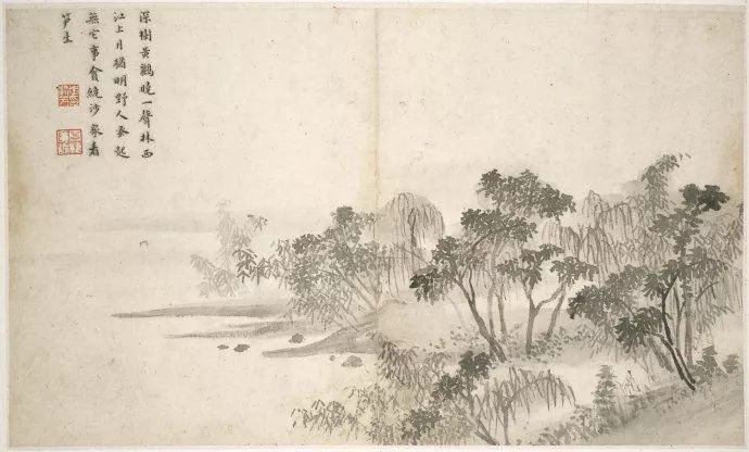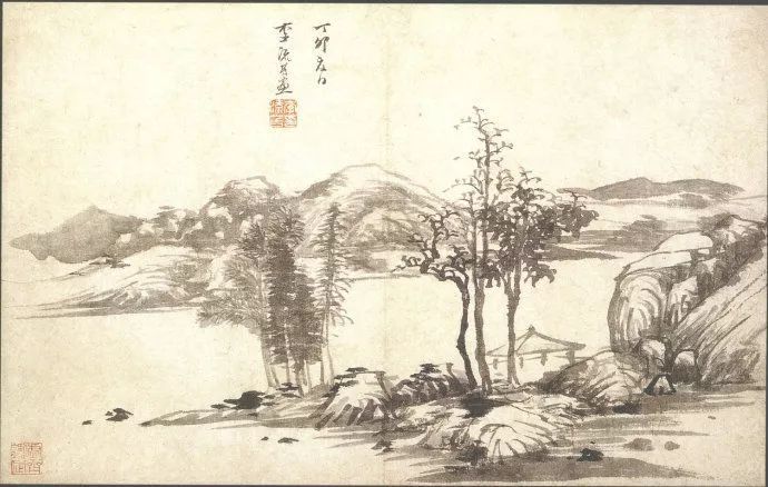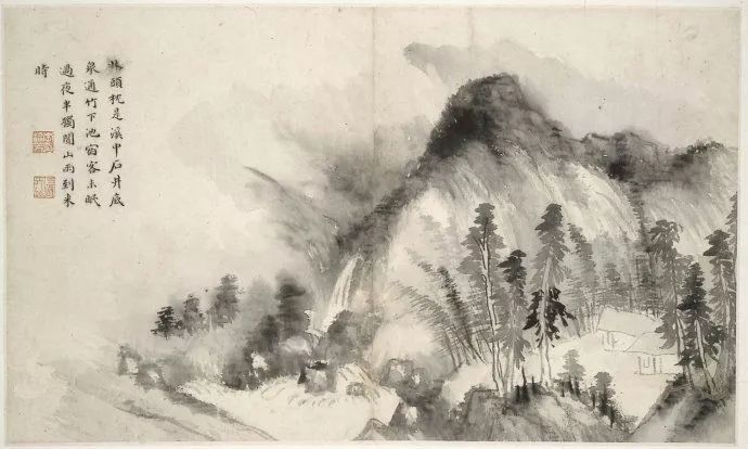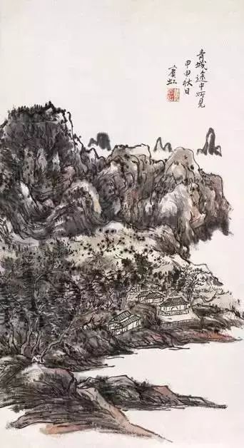 黄宾虹到40岁时作品还不算成熟,这一阶段他处在酝酿的时期,花费很多的时间学习古人揣摩传统。但是他自己早期的风貌里,已经透露出后来成熟时期的端,这个端倪就是六个字:“实处易,虚处难”,这是他早年求学时,启蒙老师指点他的话,即画有形象的地方容易,画没有笔墨没有形象、留白布虚的时候难。在这个时期的画作中可见,他已经显示出这方面的能力了,山梁留白的地方已经很好看了。