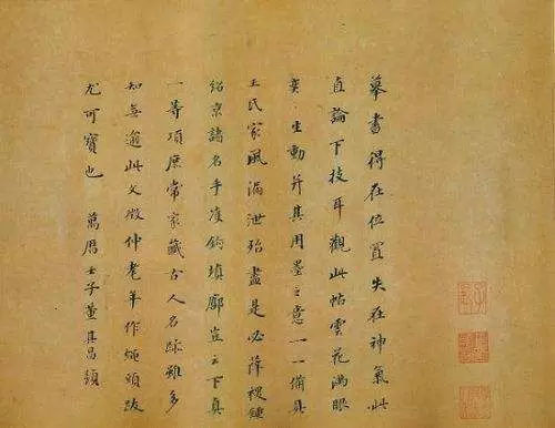 吾书无所不临仿,最得意在小楷书。而懒于拈笔,但以行草行世,亦都非作意书,第率尔酬应耳。若使当其合处,便不能追踪晋宋,断不在唐人后乘也。