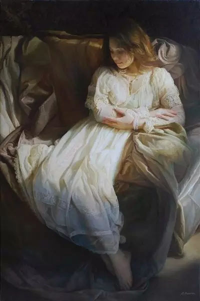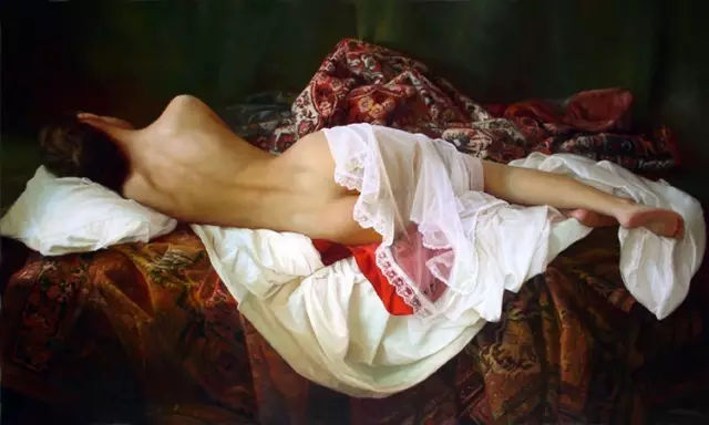 谢尔盖·马什尼科夫的画,几乎细致到了人物的每一根毛发和服饰上的织物细节,让人惊讶不已。他对不同人体油画有着不同的艺术表现方式,在不同的绘画作品中,会表达出迥异的艺术风格,是鲜明人体绘画的形态之美。