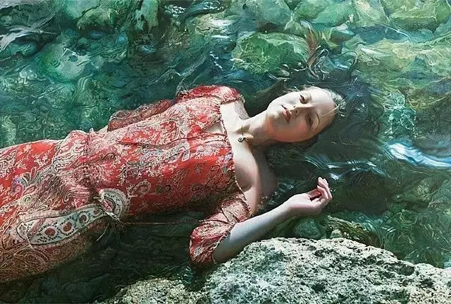 他的作品惟妙惟肖,跟照片几乎无异,灵感大部分来自于电影,充满了幻想和青春,这组作品表现了几乎梦幻般的现实,少女空灵的眼神与大自然交相辉映,使看过的人都很难忘怀。