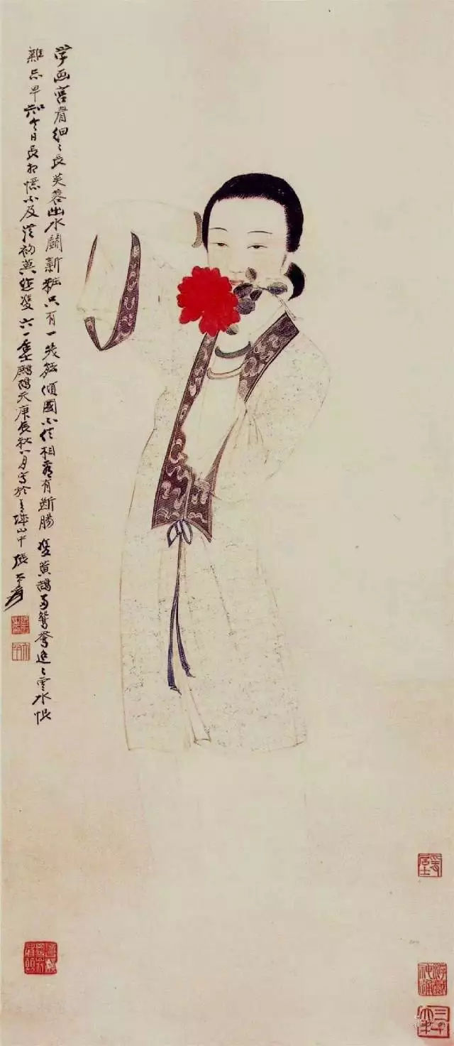 他的仕女画之所以能雅俗共赏,成为他绘画题材中大受欢迎的一类,与他对美人的“美”刻画得淋漓尽致、神髓逸出,密不可分。