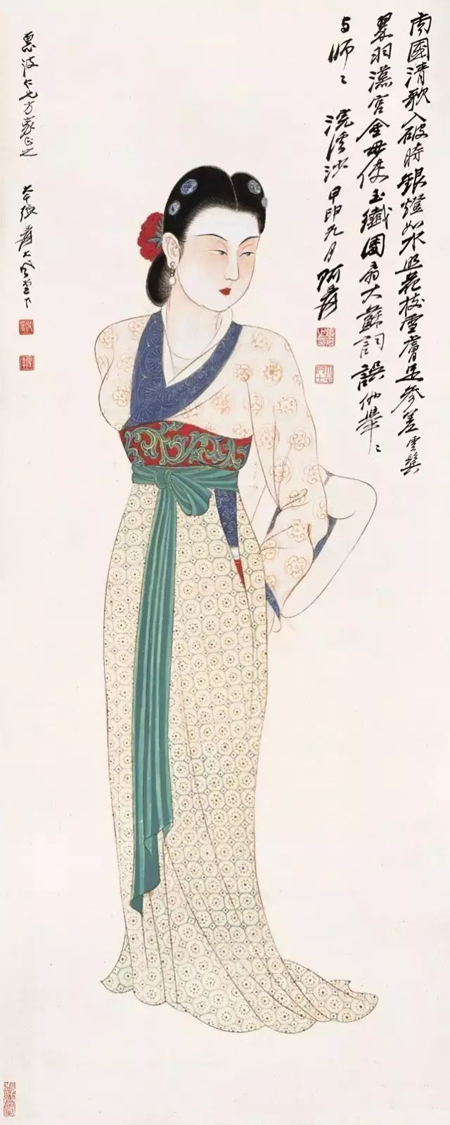 五官之外便是人的身材,一个美人的高矮胖瘦该如何定下标准呢?张大千认为以中国人的审美习惯来看,并没有特别的偏爱“胖子”或“瘦子”。所谓“环肥燕瘦”的典故强调的其实是“骨肉匀停”,匀称就是美。