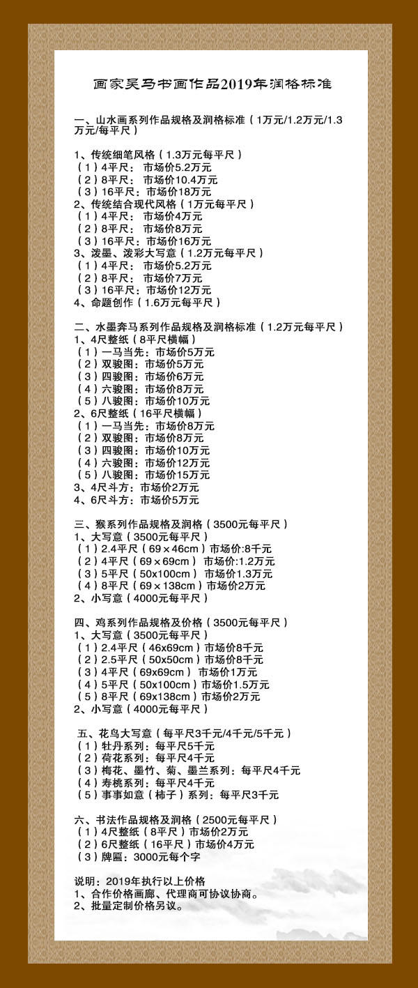吴马,画家、书法家,书画评论人。国家一级美术师;中国书法家协会会员;中华诗词学会会员;中国楹联学会会员;中国楹联学会书画艺委会委员;民盟北京市委书画家联谊会会员;中国文联中国田汉研究会书画艺术委员会委员;北京民族大学美术学院客座教授。现任国家民委中国少数民族文物保护协会民族书画艺术研究工作委员会副秘书长;中国民族书画院副秘书长;国际中国书画交流促进会副秘书长;中国民主同盟盟员。