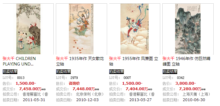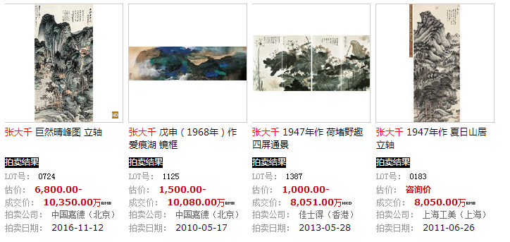 字画市场一直备受关注,今年不出例外,一整年都是由张大千,齐白石的作品领跑整个书画市场。北京保利2016秋拍《五王醉归途卷》创年度最高纪录3.036亿.张大千《桃源图》拍出2.7亿,再一次证实了书画市场的火热.目前张大千的每一幅作品价格都在千万级别.有的藏家会问,我手里张大千的字画值多少钱呢?别着急,今天小编带大家一起来了解一下这位传奇画家.