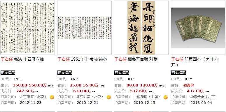 于右任作品拍卖价格记录