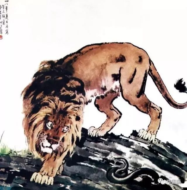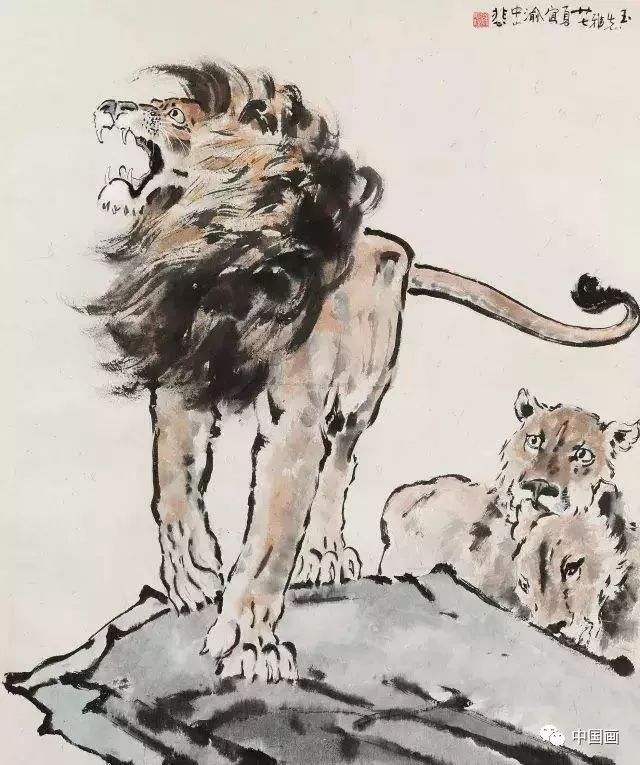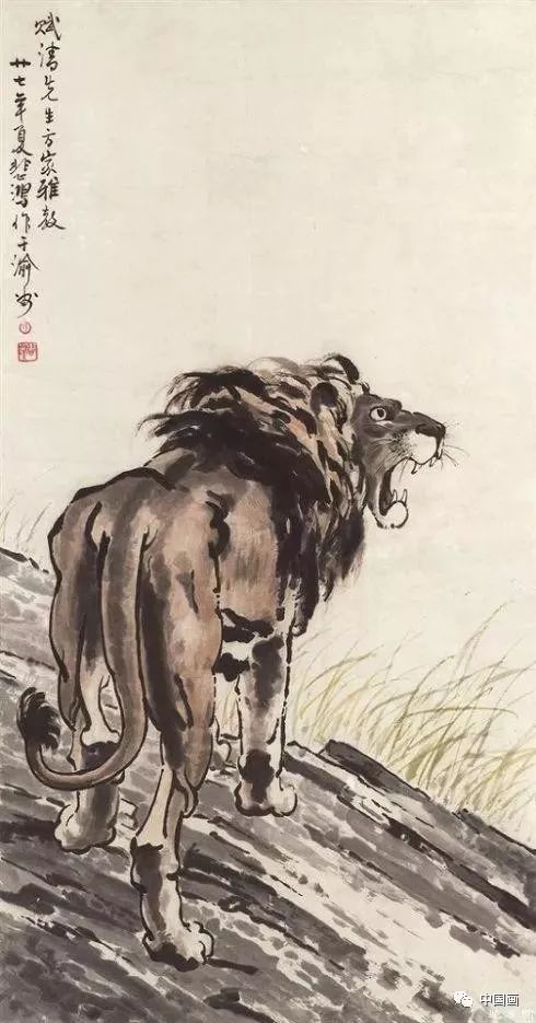 但画的魅力还不仅限于此,徐悲鸿通过它们,把中国画独有的寄情、托兴、隐喻、自况发挥到极致。以狮为例:这是徐悲鸿最喜爱的题材之一。在柏林留学期间,凡是晴天丽日,他定前往动物园画狮。他的素描《狮吼》、油画《奴隶与狮》都是令人赞叹的经典之作。在中国画中,他更借此寄托自己对于睡狮觉醒、民族振兴的渴望。