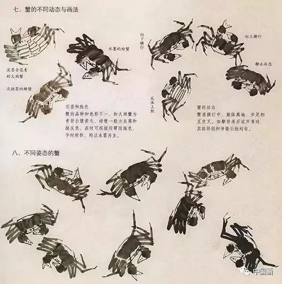 中国国画技法—螃蟹的不同动态与画法: