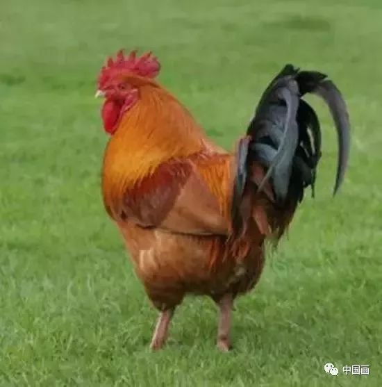 为什么中国国画中,大家愿意画鸡呢?古人认为:鸡有“五德”。头戴冠,文也;足博距,舞也;见食相呼,义也;遇敌敢斗,勇也;守夜思晨,信也。“鸡”与“吉”谐音,因此又被视为吉祥之禽。