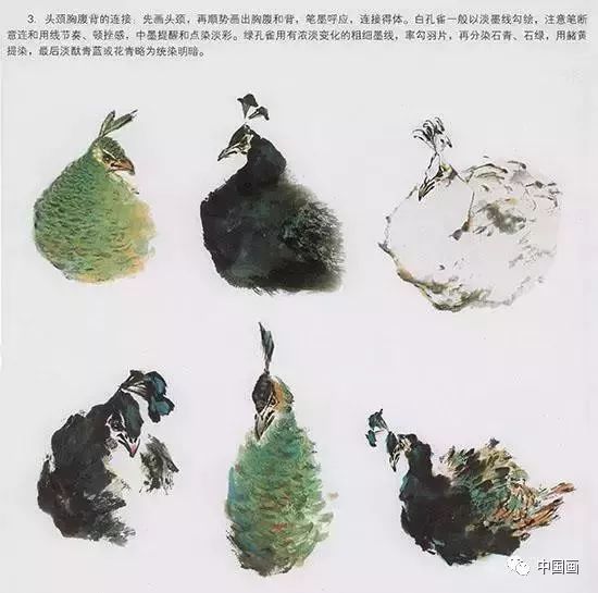 中国国画——孔雀的头颈部画法(图3)