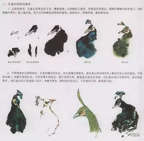 中国国画——孔雀的头颈部画法(图2)