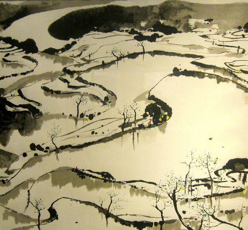 吴冠中先生画的梯田,前无古人后无来者,可谓绝美似桃花源。刚开始我以为是照片,打开一看竟然是一幅画,这光线的明暗,色彩的浓淡,线条的粗细都把控得相当之好,真不愧为国画大师。