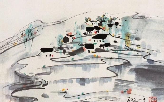 这难道不是桃花源吗?吴冠中先生的画作用色浅淡,但又倍感亮丽,个人感觉像九寨黄龙的水色,有木有?