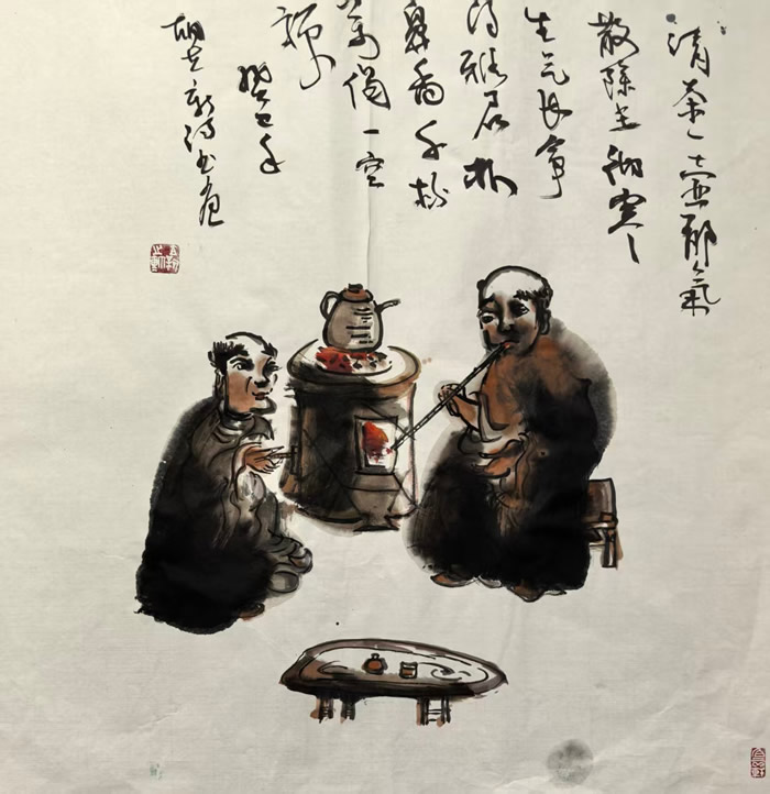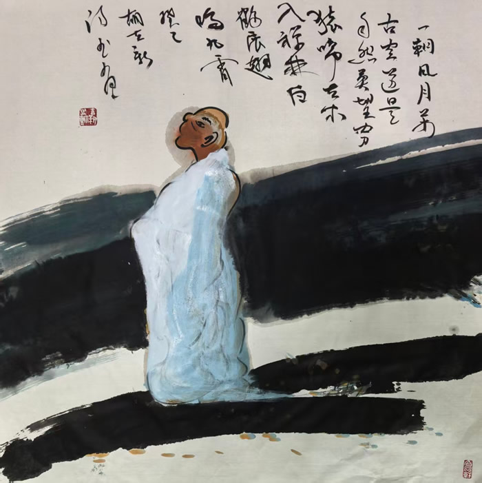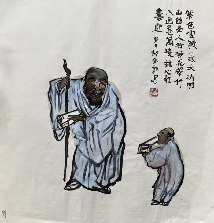 胡立新(号“贫道子”)禅意新水墨诗书画人物系列作品鉴赏