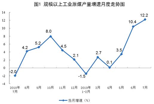 2019年7月份能源生产情况:原煤产量3.2亿吨,同比增长12.2%
