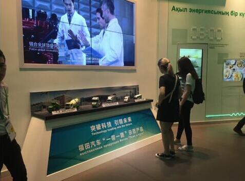 作为2017阿斯塔纳世博会中国馆唯一指定用车的“金牌赞助商”,且是中国馆唯一合作的汽车企业,福田汽车向全体嘉宾展示了福田汽车构建的以“未来能源,智慧城市”为主题的示范区,以基础设施建设、高效物流运输、城市绿色运营及出行三大细分市场的一站式解决方案,勾勒出了福田汽车持续打造绿色、低碳的产品和服务,致力于创造人?车?环境和谐之美的发展路径。与会嘉宾和客户共同参观了福田汽车“一带一路”绿色科技示范产品展区、福田汽车智联超卡专题展区,并登上福田汽车产品亲身体验驾乘感受。同时,世博会中国馆还举行了“福田带你游世博”、“祝福福田”等互动活动,让所有参与人员切身体验福田汽车这张中国绿色智造名片。