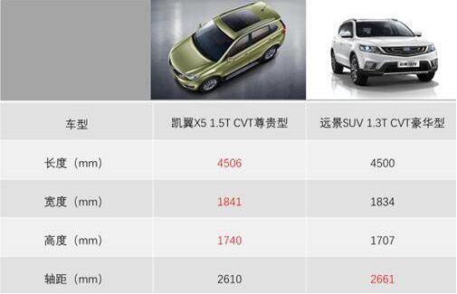 凯翼X5 1.5T CVT尊贵型VS远景SUV 1.3TCVT豪华型