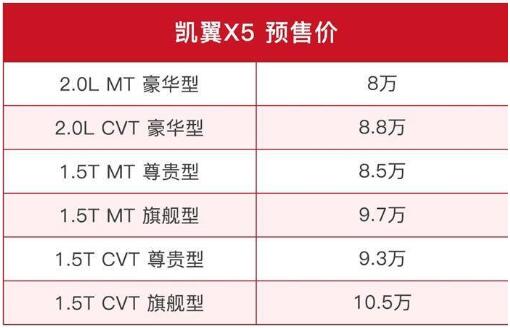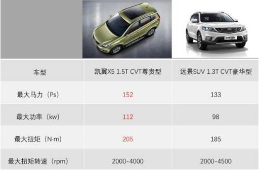 凯翼X5与远景SUV动力对比