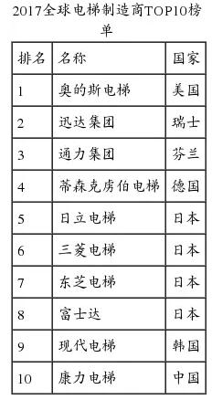 格林传媒《ELEVATOR》杂志最新发布了“2017全球电梯制造商TOP10”中,入榜企业中首次出现中国自主品牌的身影——康力电梯。这也是唯一入选的中国电梯企业。该榜单按电梯相关业务的销售收入,以及企业成长性、国际化指数、品牌力、技术领导力、盈利能力等重要指标综合评定。
