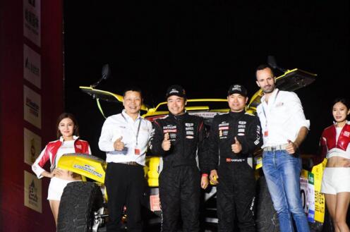 (2017年9月23日 阿拉善左旗) 9月23日晚,2017达喀尔系列中国拉力赛暨中国汽车越野锦标赛(阿拉善站)在阿拉善英雄会会场盛大开幕,吉利汽车固铂轮胎车队著名越野车手韩魏及领航员廖岷在广大越野爱好者的欢呼声中驾驶“大黄蜂赛车”通过发车台。9月24日车队将从越野e族阿拉善梦想公园发车,与国内外五十多支车队、近百名车手与领航员展开为期一周的激烈竞逐。这是韩魏首次参加达喀尔系列中国拉力赛,也是自取得2017年丝绸之路拉力赛全场第三、刷新中国车手在国际赛事中最好成绩后的首次比赛。