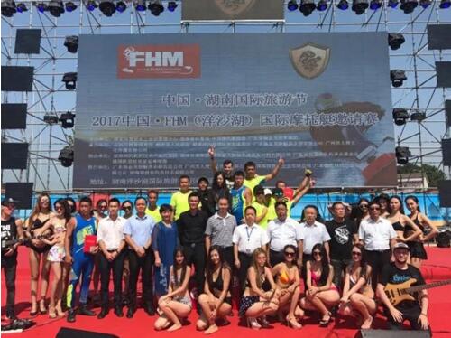2017洋沙湖国际7FHM国际摩托艇邀请赛是本次旅游节的重要活动及开幕式的重头戏,9月26日,摩托艇邀请赛也迎来了闭幕式,现场的颁奖典礼更是激动人心,经过一番激烈角逐,最终产生了本场赛事的冠军、亚军和季军。作为本次旅游节的协办方,蓝天豚常务副总经理黄秋苗为三位获奖选手颁发奖牌,并道上祝贺。为期三天的赛事让来自海内外的游客和广大体育运动爱好者领略了风情独特、水韵淳美的“湖天盛宴”。