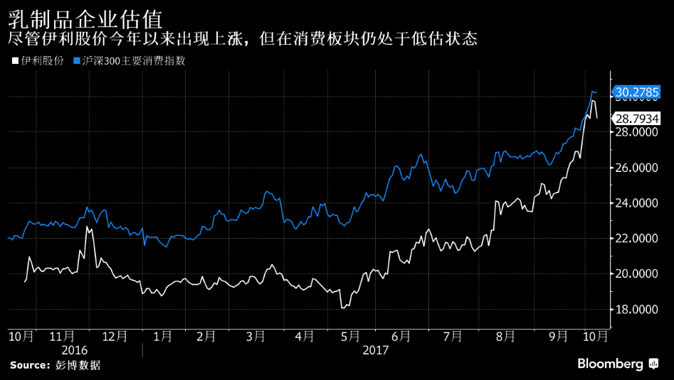 据彭博社报道,伊利和蒙牛股价此前双双创下历史高位,这要得益于它们在海外大举寻觅收购以图加强奶源供应。另外,通过向高端酸奶及婴幼儿配方奶粉等利润更丰厚的业务领域侧重,这两家实际上的双寡头盈利前景十分乐观,同样也构成了利好。