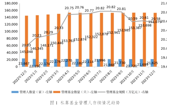 中国证券投资基金业协会日前发布的数据显示,截至2023年12月末,私募基金管理数量共153079只,私募基金管理规模达20.58万亿元。