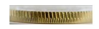 硬币外缘分布有交替排列的斜全齿与半齿。防伪特征效果见图2。
