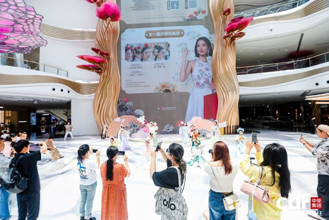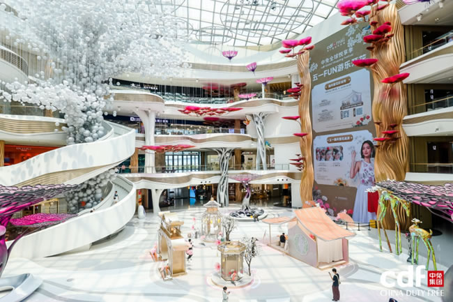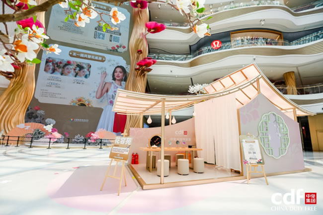 cdf海口国际免税城重磅推出首个国风美学空间——中免悦享花园,并设置三大互动打卡点“花容苑”、“祥铃亭”、“花韵亭”,让消费者在购物的同时感受东方美学魅力。“花容苑”化妆师现场为顾客打造新中式妆容,传递东方美学自信,联动小相馆打印花卉主题照片,带来沉浸式美学体验。在五一假期期间,cdf海口国际免税城特别策划国风牡丹花使簪花巡游,活动现场花使与消费者进行合影互动并派发礼品,进一步传递非遗簪花的文化魅力。母亲节期间将邀请国风乐团,现场演绎国风乐坊秀,消费者可邀请妈妈一起,享受一场新中式美学视听盛宴。cdf海口日月广场免税店打造缤纷花墙合影点,让春日好礼触手可及。