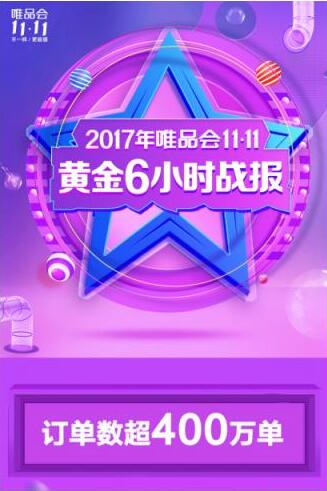 唯品会11.11开售6小时订单数破400万 北京成“剁手王”