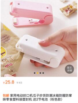 日本新型便携封口机,只需轻轻一拉,即可封口。面粉袋、米袋、零食袋、收藏袋……只需一下,一封到底,保质保鲜,轻松无忧!日本优质材质,颜色纯净无添加,经久耐用,家居必备。