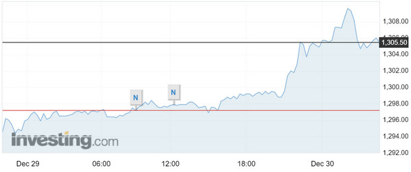 环球财经网讯 国际金价周五突破每盎司1300美元,这是自11月份以来首次突破1300美元。金价2017年累计上涨14%。