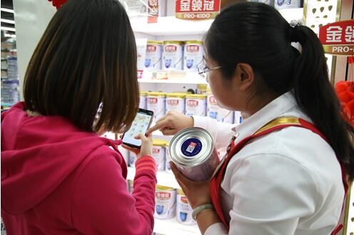 (营养顾问为消费者介绍金领冠追溯系统使用方法)