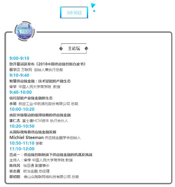 议程确定 2018中国供应链金融创新高峰论坛耀世来袭
