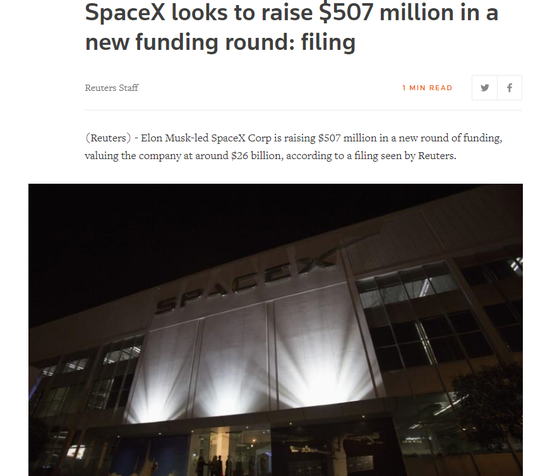 该方案还将I系列股票的初始价格定为169美元,高出去年年底筹资融资文件中给出的价值25%。如果新一轮融资能够成功完成,SpaceX估值将达到260亿美元。